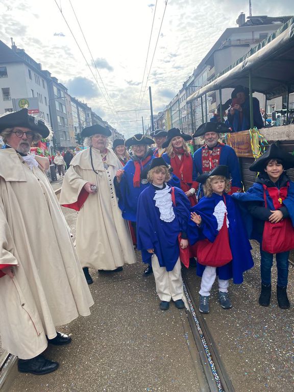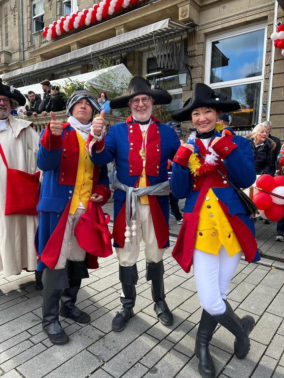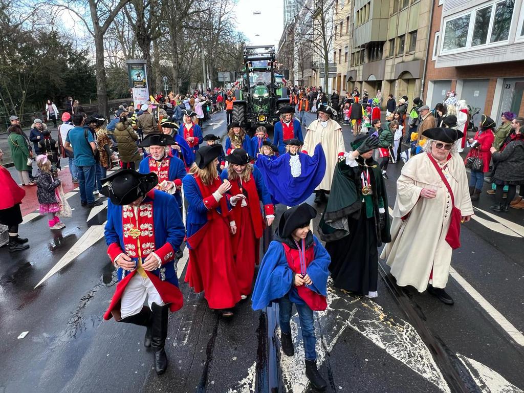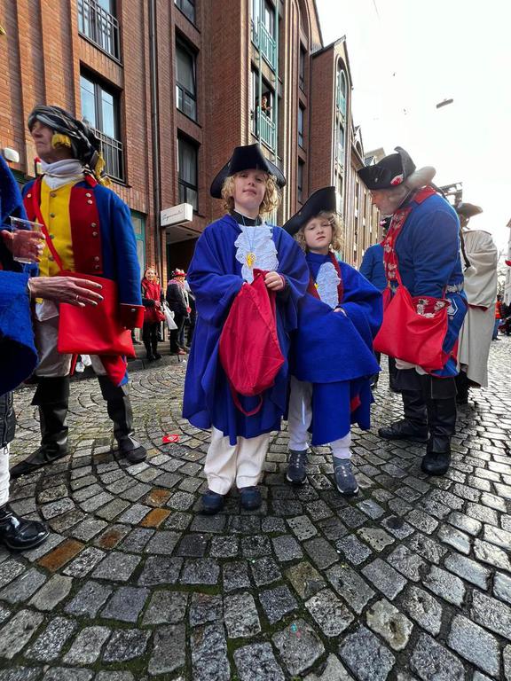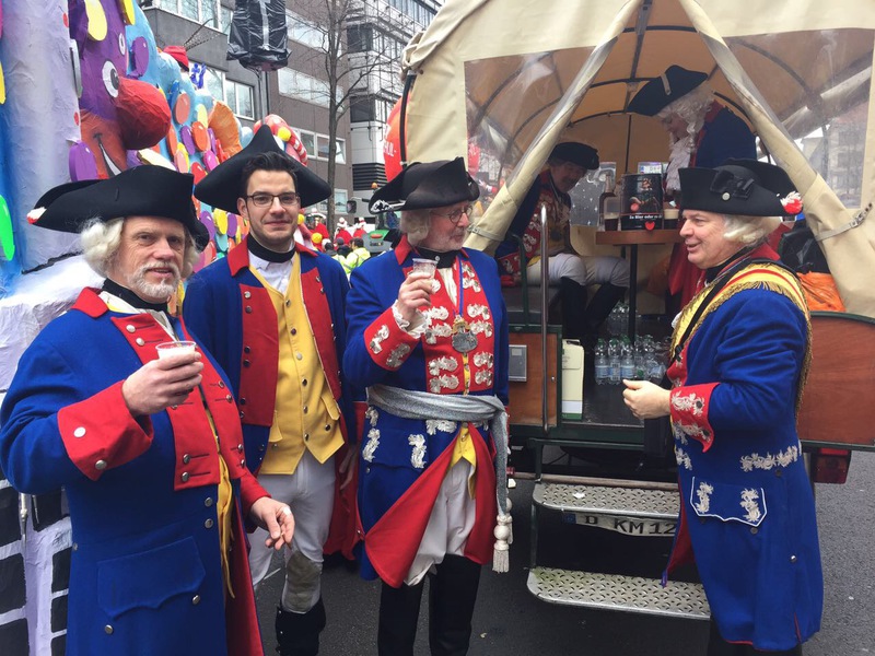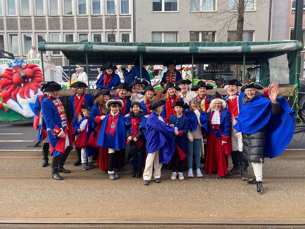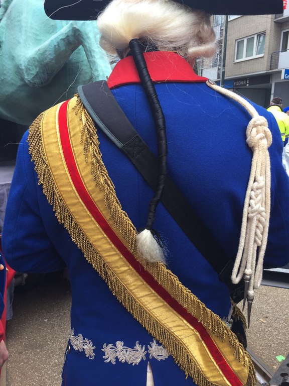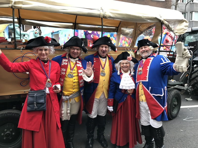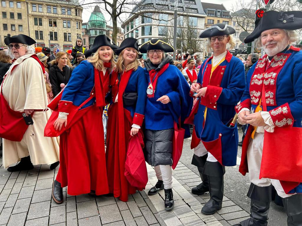 Zu jedem Rosenmontagszug in Düsseldorf nimmt eine Abordnung der Schlossgarde in historischen Uniformen teil - hoch zu Roß und mit Fußtruppen